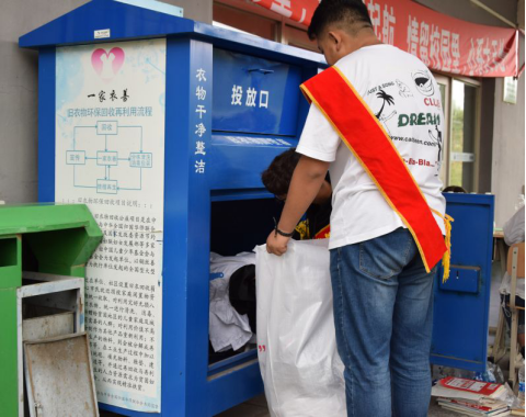 学生们将捐赠的衣物装入“一家衣善”公益项目专用回收车,送往哈尔滨市“一家衣善”爱心基地,经基地专业人员分类、清洗干净后捐赠给贫困地区,希望给有需要的人带去一丝丝温暖。
