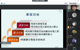 杨昕院长结合讲授的《环境生态学》教学大纲,培养学生爱国的情怀,树立“绿水青山就是金山银山”的理念,理解专业伦理与社会责任;培养学生具备从事环境生态相关工作的爱岗敬业、甘于奉献的职业道德素质;具备积极乐观、豁达大度的心理品格素质;具备视野开阔、思维开拓的创新素质。彭殿宝副院长以《分析化学》和《环境影响评价》两门课程为例,分享了课程中发掘的课程思政元素,如何把握好思政元素融入的节点和时机,探索有效的融入方式和渠道,实现专业知识与理想信念、品德修为、文化自信等方面的内在融合。学院其他各位教师也全部结合自己所讲授的课程,分享了各自在课程思政教学中的做法和经验。
