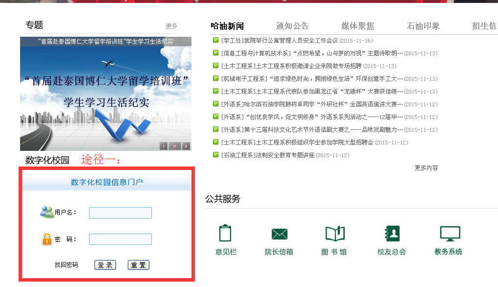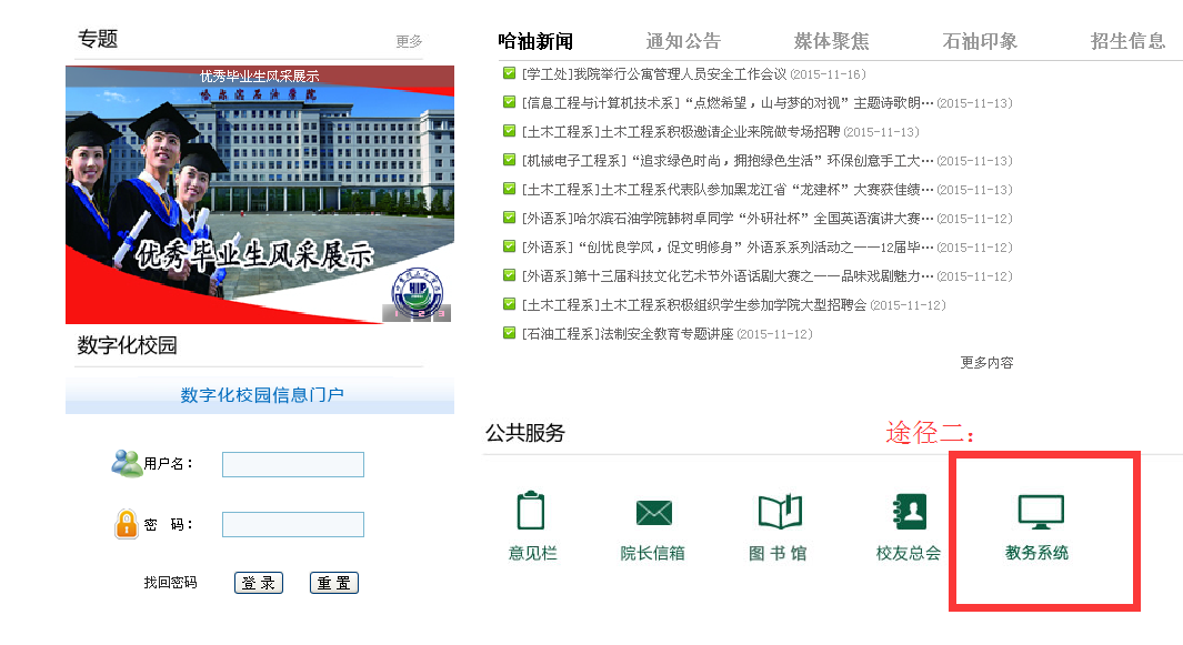 选课登陆方式二:http:/进入学院主页直接从右下角教务系统登陆