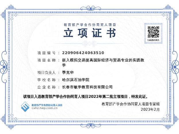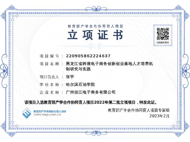 教育部高等教育司公布了《关于公布2022年第二批产学合作协同育人项目立项名单的通知》(教高司函〔2023〕1号),冰球官网获批6项教育部2022年第二批产学合作协同育人项目。