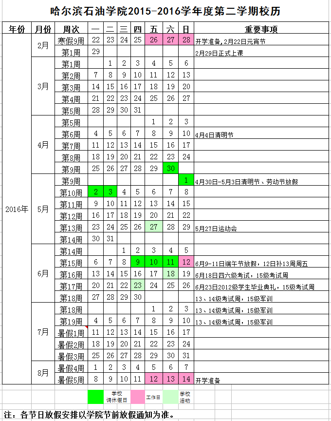 冰球突破豪华版官方网站2015-2016学年度第二学期校历
