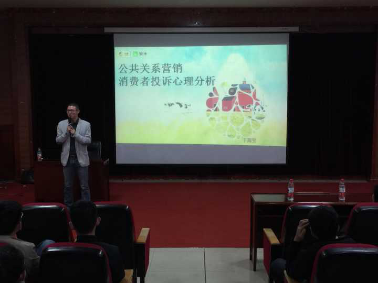 4月5号下午14:30分,经济管理学院于主教学楼518报告厅举办了一场有关公共关系营销的讲座。本次讲座的主题为公共关系营销之消费投诉心理分析。主讲人为我院管理系的客座教授、蒙牛乳业的区域公共事务总监于海宝先生。于总监具有多年的工作经验,主要工作和研究领域为政府媒体关系的维护与建立,品牌形象、危机公关、企业社会责任,具备很强的理论联系实际的能力。