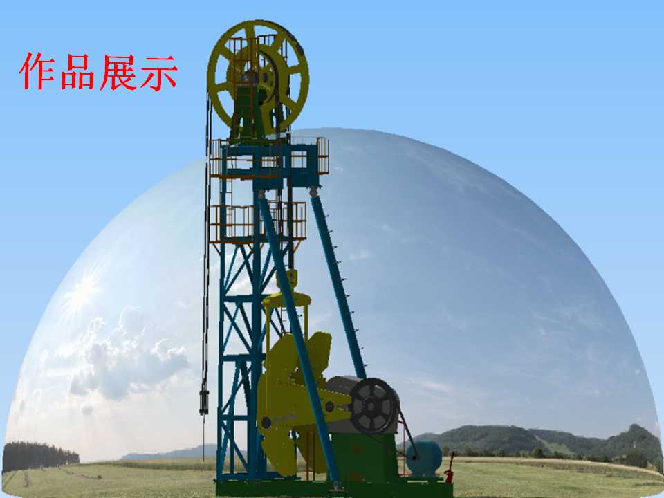 该作品是由冰球官网11级机械设计制造及自动化专业(模具方向)学生解晓亮、李佳辉创作,教师王妍玮、崔旭明指导的,经过一个多月的昼夜奋斗,700多个零部件配合设计的复合天轮式长抽程抽油机。作品充分利用长冲程和高冲次的设计参数,利用钢丝与复合天轮连接实现增程,设计结构新颖,该作品采用Inventor软件平台,并制作了演示动画。