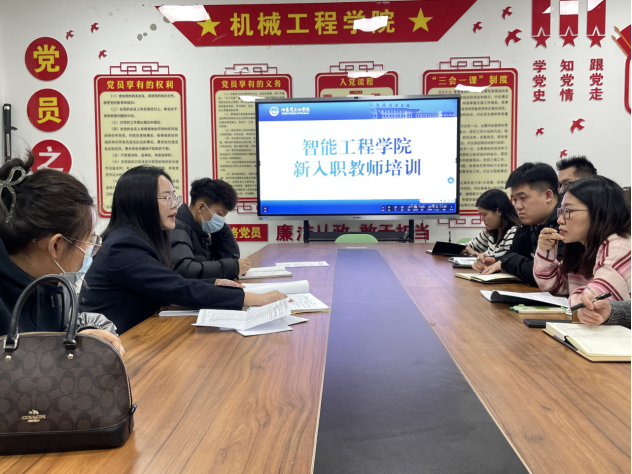 为增强推进师德师风建设,强化责任担当,促进新入职教师尽快融入集体,2023年11月14日下午,在414会议室召开了智能工程学院新入职教师培训。智能工程学院副院长韩蓉主讲,全体新教师参加了此次培训。