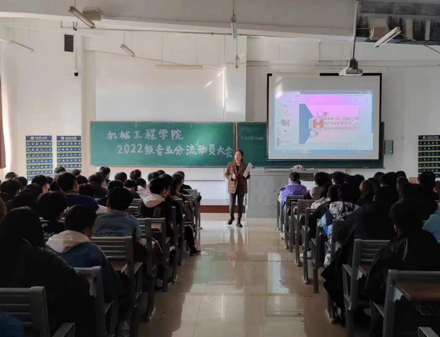 会议伊始,机械工程学院院长王俊发对专业情况进行概括,并介绍了专业分流相关流程,他强调一定要在结合实际的基础上明确自己未来的发展方向。2022级专业分流工作宣讲会依次邀请机械设计制造及其自动化系主任高宇博、材料成型及控制工程系副主任韩蓉、过程装备与控制工程系主任周玲玲、机械电子工程系主任李军、工业设计系主任李佳阳,各个系主任分别就各个专业的课程设置,师资力量,就业前景及考研方向进行详细介绍,并就机械类专业分流工作做了整体部署,从分流原则、分流计划、分流机制、工作程序、工作进程等方面进行了详细说明。