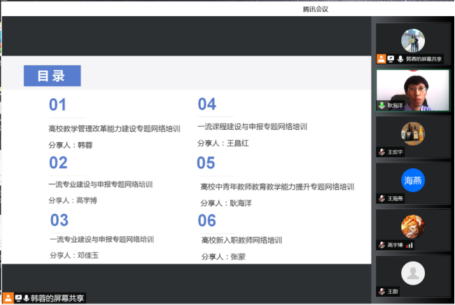 围绕立德树人根本任务,推广先进教学理念、经验、技术和方法,示范带动学院专业、课程、教师、学生等关键要素改革,提升教师教育教学水平。机械工程学院于5月17日下午14时在腾讯会议召开网络培训收获交流分享会。分享会由教学副院长韩蓉主持,全体教师参加。