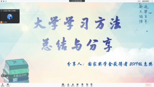 本年度国家奖学金获得者2019级惠樊学姐的大学学习方法总结与分享,她让21级同学们了解在大学如何知道自己的目标并为之不断追逐,掌握一些适合自己的学习方式技巧,对英语、计算机过级考试和学生干部工作等问题有了初步认识,让迷茫的新生更快步入大学生活的正轨。