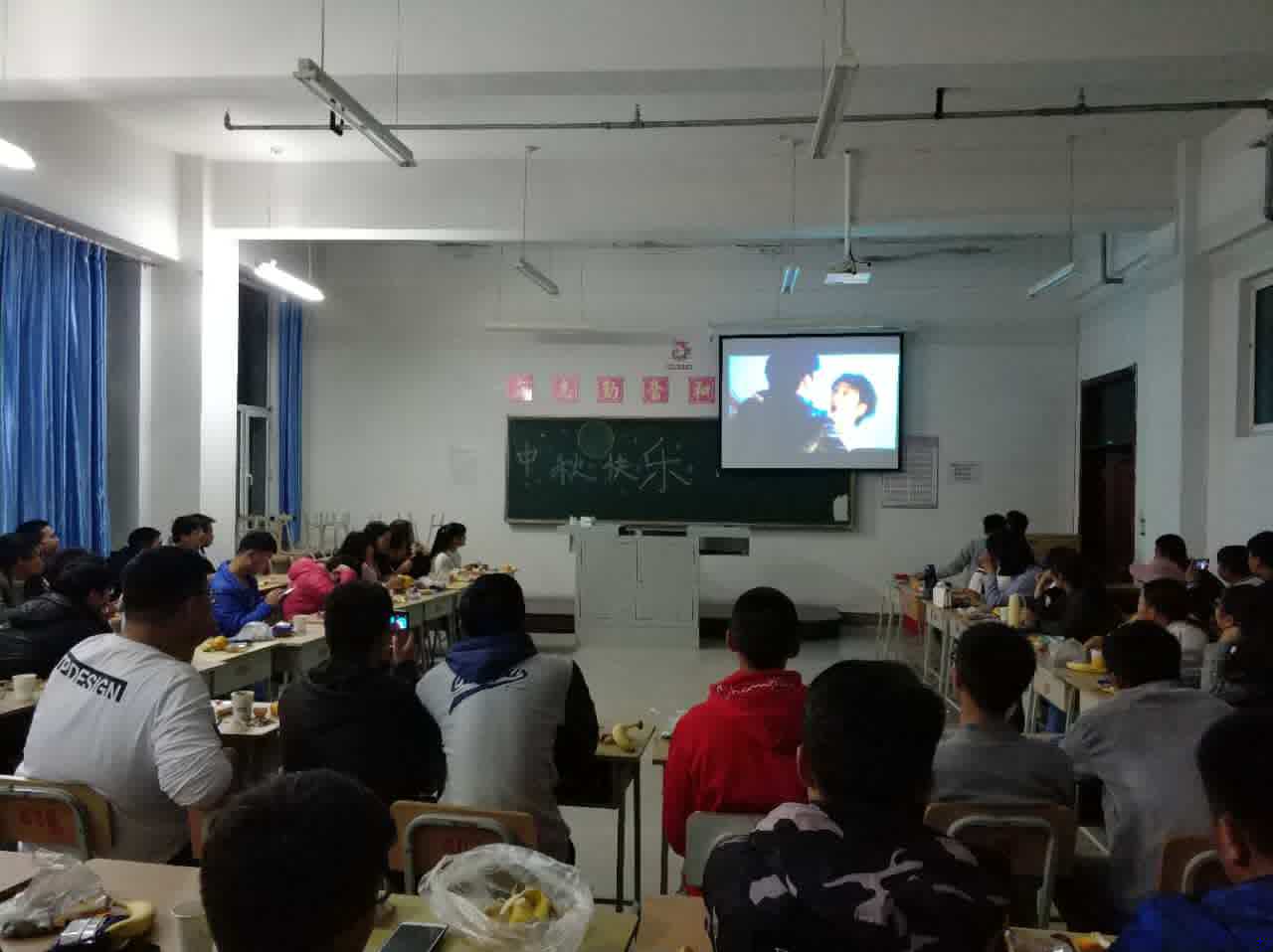 金风送爽,丹桂飘香。中秋节到来之际,恰逢国庆长假,到处都呈现一片祥和的节日氛围。由于我院人数众多,很多外省市学生因为回家路途遥远而选择留在学校过节,为了让留校同学在节日中远离思乡离愁,愉快地度过这个中秋,学院党总支书记苏永彬和团总支书记徐靖宇老师在10月4日当晚特地来校看望留校过节的所有学生,苏永彬书记首先表达了学院对于学生的祝福和关心,希望同学们能够欢度佳节,愉快的完成大学生活,随后两位老师为每一位同学发放学院精心准备的月饼和水果等食物,还一起在608教室观看新上映的电影“羞羞的铁拳”,整晚欢笑声不断,机械师生一起共度中秋佳节。
