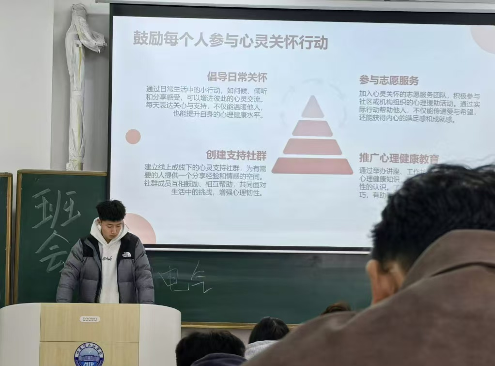 为响应全国世界精神卫生日的号召,进一步增强我院学生心理健康意识,树立正确的心理健康观念,2024年11月6日,智能工程学院于主教501教室开展了“解忧杂货铺,爱回应心灵”主题心理健康活动。