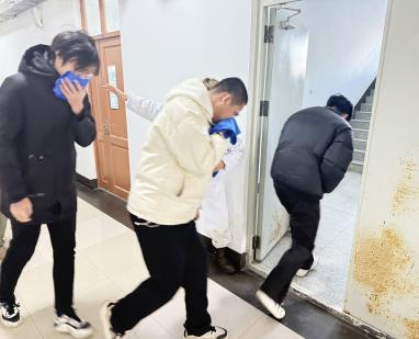 随后,实验楼消防疏散演练正式开始。在预定时间内,模拟发现“火情”,学院立即启动了应急预案,通过警报信号发出疏散指令。师生们按照事先规划好的路线迅速有序地撤离至指定安全区域,整个过程中保持了高度的冷静和秩序。同时,部分师生还使用灭火器尝试控制火势,并等待专业消防队伍的到来。