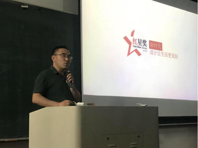 与会嘉宾王笑天老师发表讲话,他用幽默的语言、生动的事例为大家讲解红星奖及红星原创奖参评相关事宜,让同学们了解到红星奖是公平、公正、高水平的工业设计大奖,王老师分别从国际化、公益性、影响力等方面展开详细介绍。王泽新老师则为大家分享在企业工作中的一些案例,让同学们直观的感受到作为“企业设计师”这一身份。