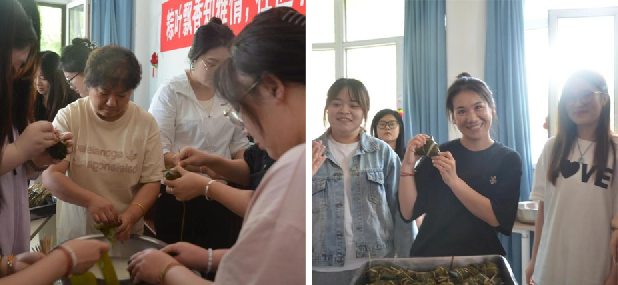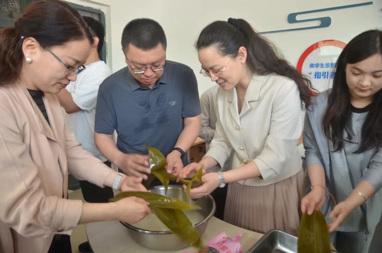 同学们在包粽子过程中互相帮助、互相学习、互相合作,一个个形态各异的粽子在一双双巧手下很快“诞生”,整个过程充满了快乐和挑战,现场氛围轻松又热烈、温馨又融洽,不仅锻炼了同学们的动手能力,也让同学们深刻感受到了传统文化的魅力。活动现场,同学们通过撞鸡蛋小游戏,在欢声笑语之中,将端午安康的祝福送予对方,彰显了浓浓的同学情谊,掀起了活动高潮。活动最后,师生互系五彩绳,把最美好的祝福送给彼此。