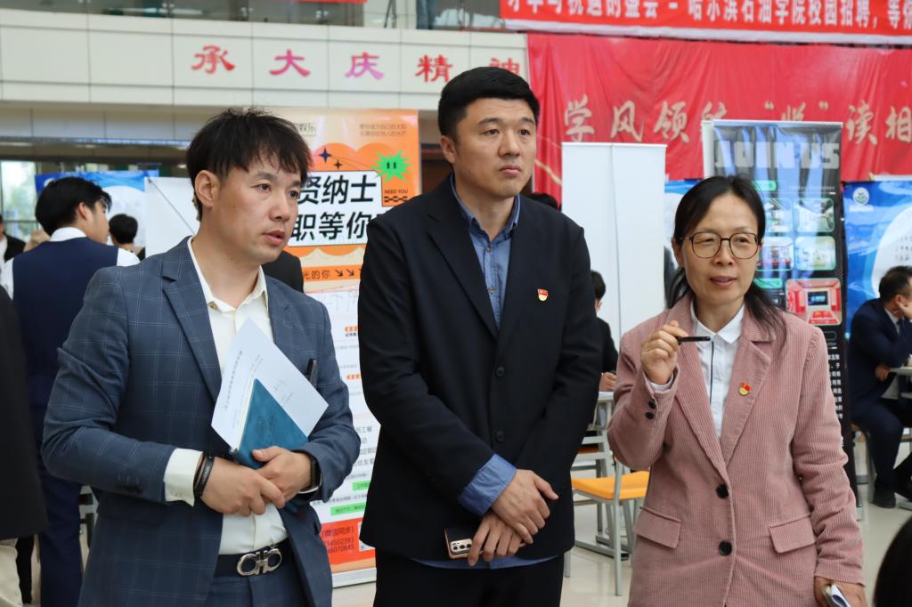 学校领导高度重视此次双选会,校长王义宁,党委副书记、副校长冯研等领导亲临双选会现场指导工作,并与企业代表和毕业生进行深入交流,王校长强调学校将继续加强与企业的合作,探索校企合作新模式,为学生提供更加多元化的实习、就业渠道。同时,校领导也与学生们亲切互动,鼓励他们充分展示自己的才能和优势,积极争取理想的实习、就业机会。