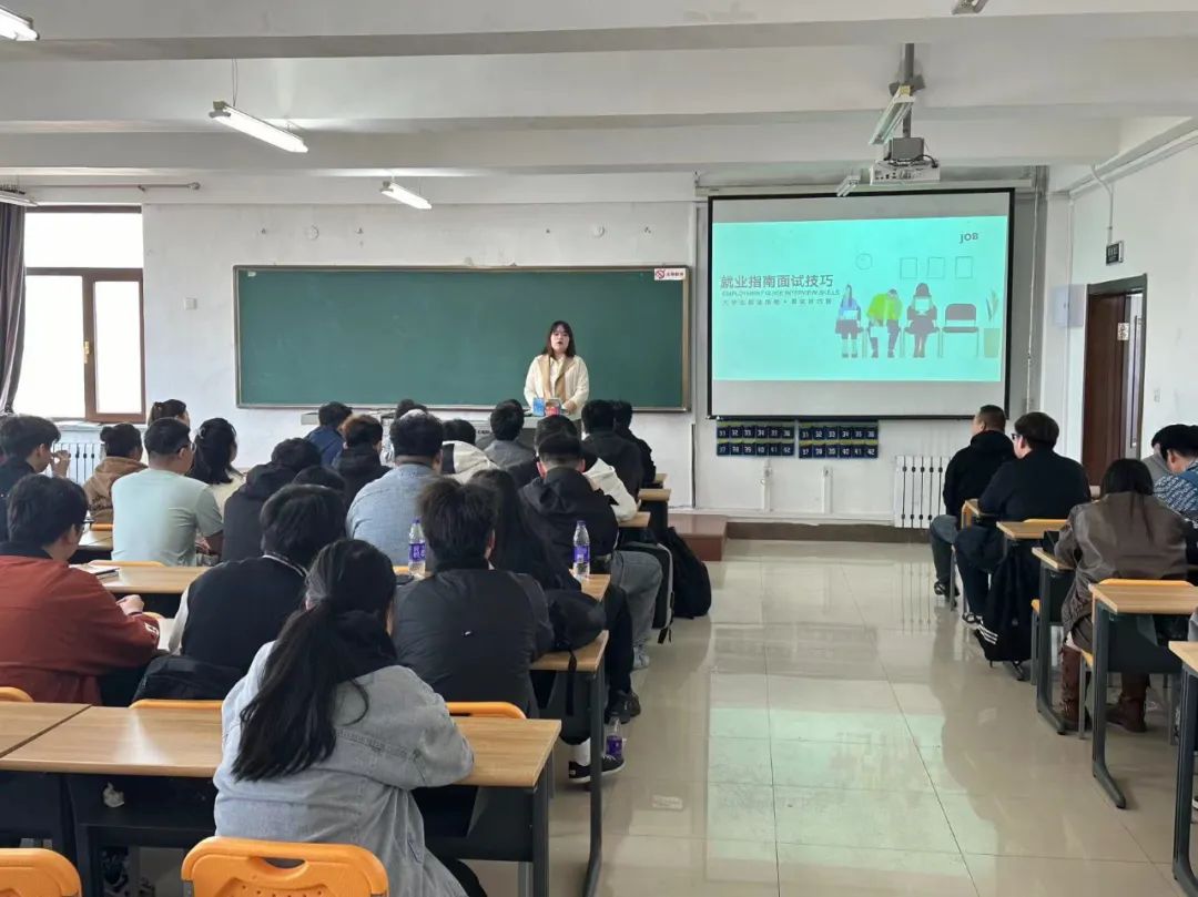 随后,辅导员从面试前心态调整、简历准备、仪容要求等多个方面对讲座的主题进行了全面、深入的讲解。详细介绍了面试的四种形式及其特征,并就常见的面试问题进行提问,以问答的形式提高学生的参与度,同学们积极发言,踊跃表达自己的想法。辅导员提示同学们准备一段精彩的自我介绍,系统学习求职礼仪,做好应聘准备,提升面试竞争力。并提醒同学们提高警惕,学会甄别虚假招聘信息,重视个人信息安全,做好个人信息保护。