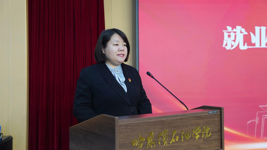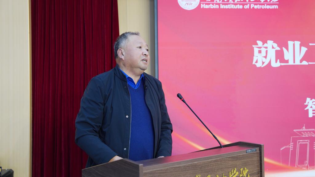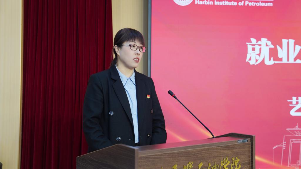 智能工程学院院长王俊发、艺术与教育学院党总支书记徐宏莉、石油工程学院2024届毕业生辅导员张雪作就业工作交流汇报。
