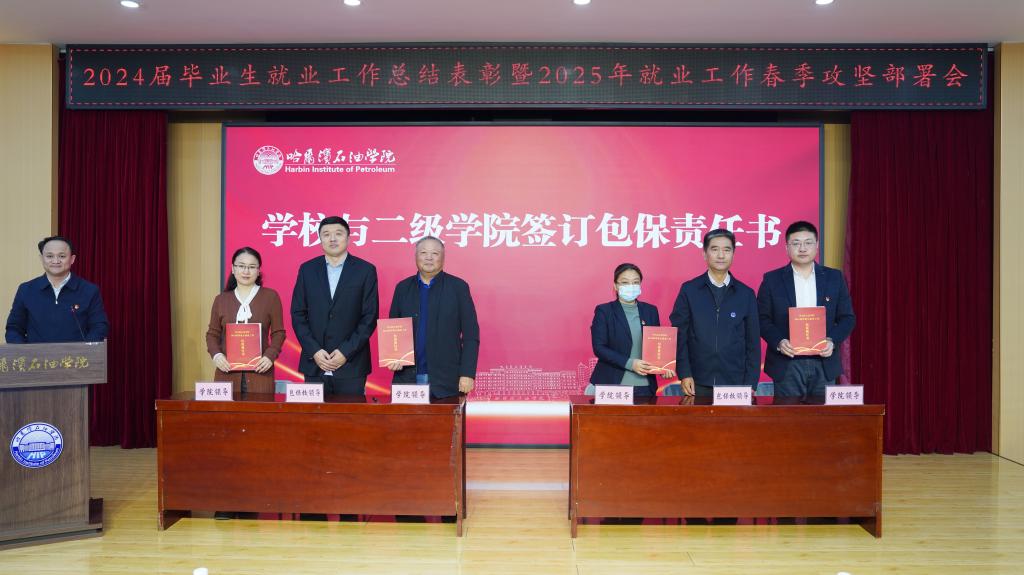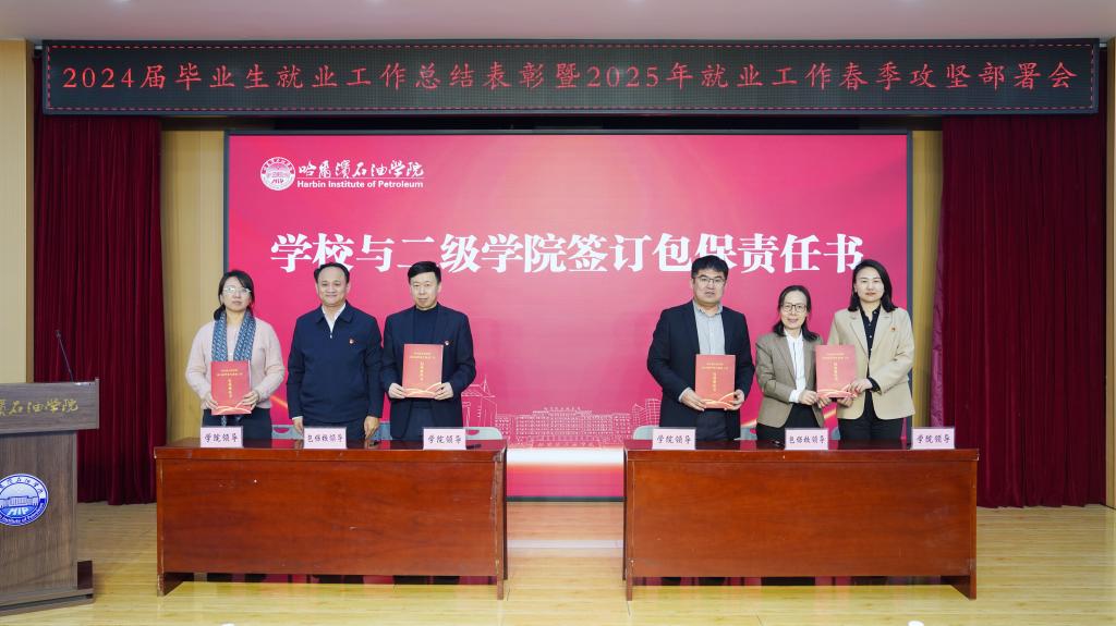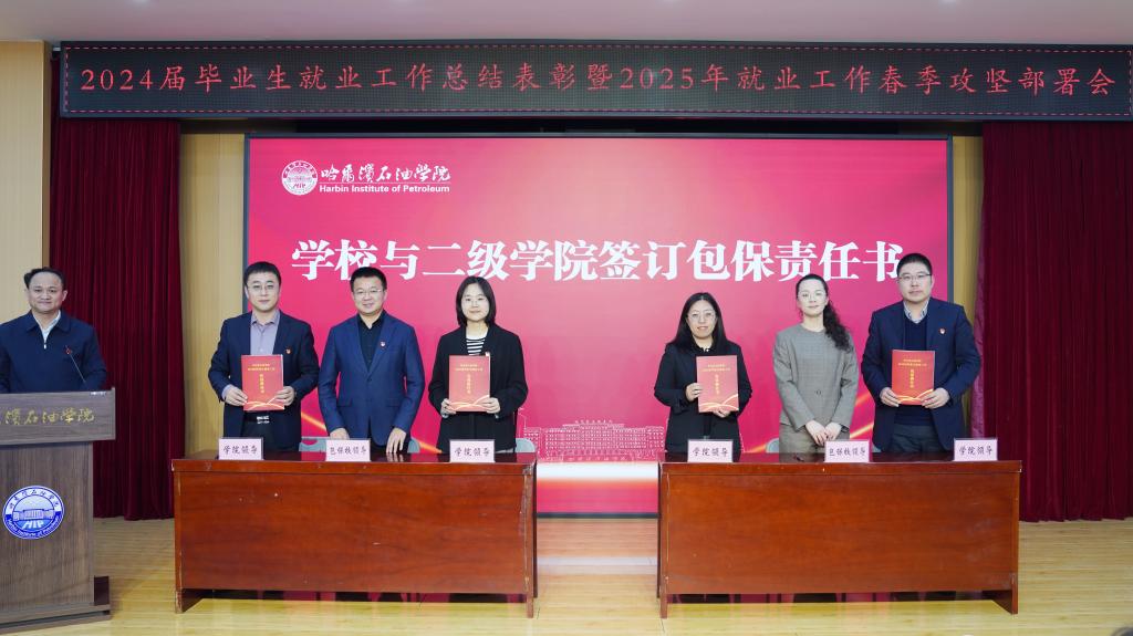 为进一步压实责任、凝聚合力,校领导与各二级学院代表签订了就业工作包保责任书。党委书记、校长、包保校领导、二级学院党政负责人共同参与签订,明确了各方在就业工作中的责任与义务,形成“全员参与、全程发力”的工作格局,确保就业工作的顺利推进。