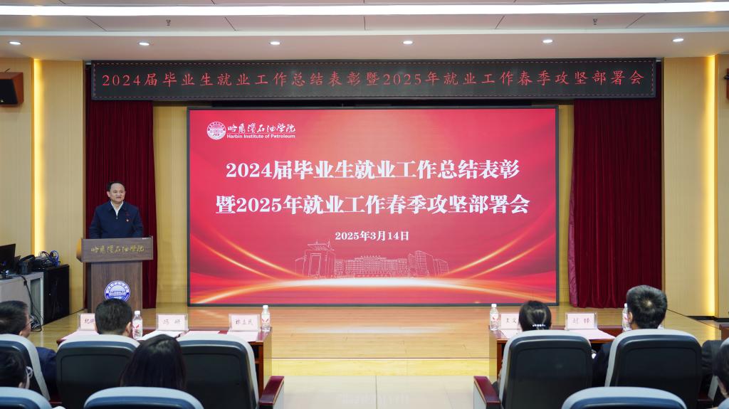 最后,党委书记林立民发表讲话。他强调,学校要千方百计稳岗拓企,巩固与大型石化企业和公司的合作;精准对接供需平台,提高就业匹配度;重视就业指导和育人实效,提升学生的综合素养和就业竞争力。他希望全校上下以此次会议为起点,以更加饱满的热情、更加昂扬的斗志、更加务实的作风,全力以赴打好2025年就业工作攻坚战!
