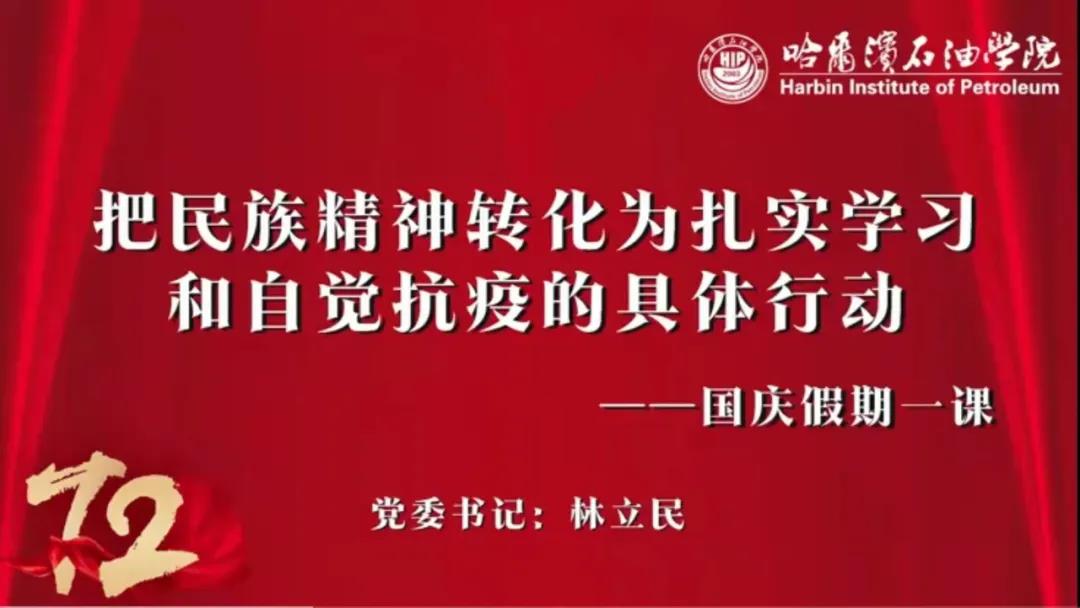 10月1日,土木工程学院组织全体学生通过线上方式观看由学校党委书记林立民讲授的《把民族精神转化为扎实学习和自觉抗疫的具体行动》为主题的“国庆假期第一课”。