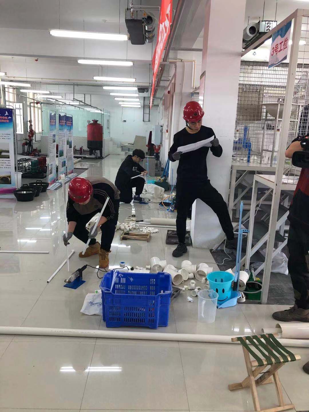大赛分为理论+实操考试两部分,比赛时长共计4个小时,主要包括水暖系统安装规范知识题、平面图与系统图的绘制、水暖系统安装等比赛内容。四名参赛队员沉着冷静,团队配合默契,按竞赛计划完成了这次比赛,取得了一定的成绩,但也存在很多不足,在以后的学习训练中,不可忽视小的细节,融入精益求精的工匠精神,最终形成踏实严谨、耐心专注、追求卓越的优秀品质。