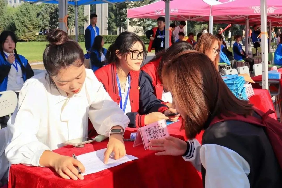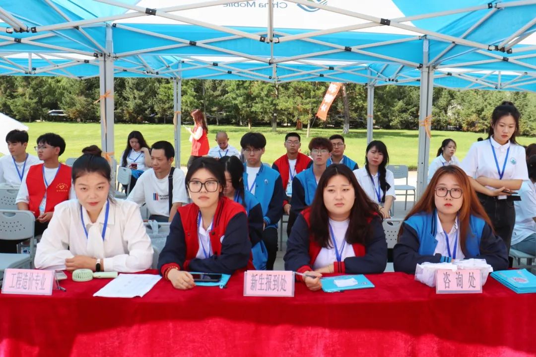 在迎新工作中,学院全体工作人员有条不紊地核实新生身份信息、扫码报到、发放寝室钥匙,并为每一位新生发放了学院精心准备的“相遇礼”。