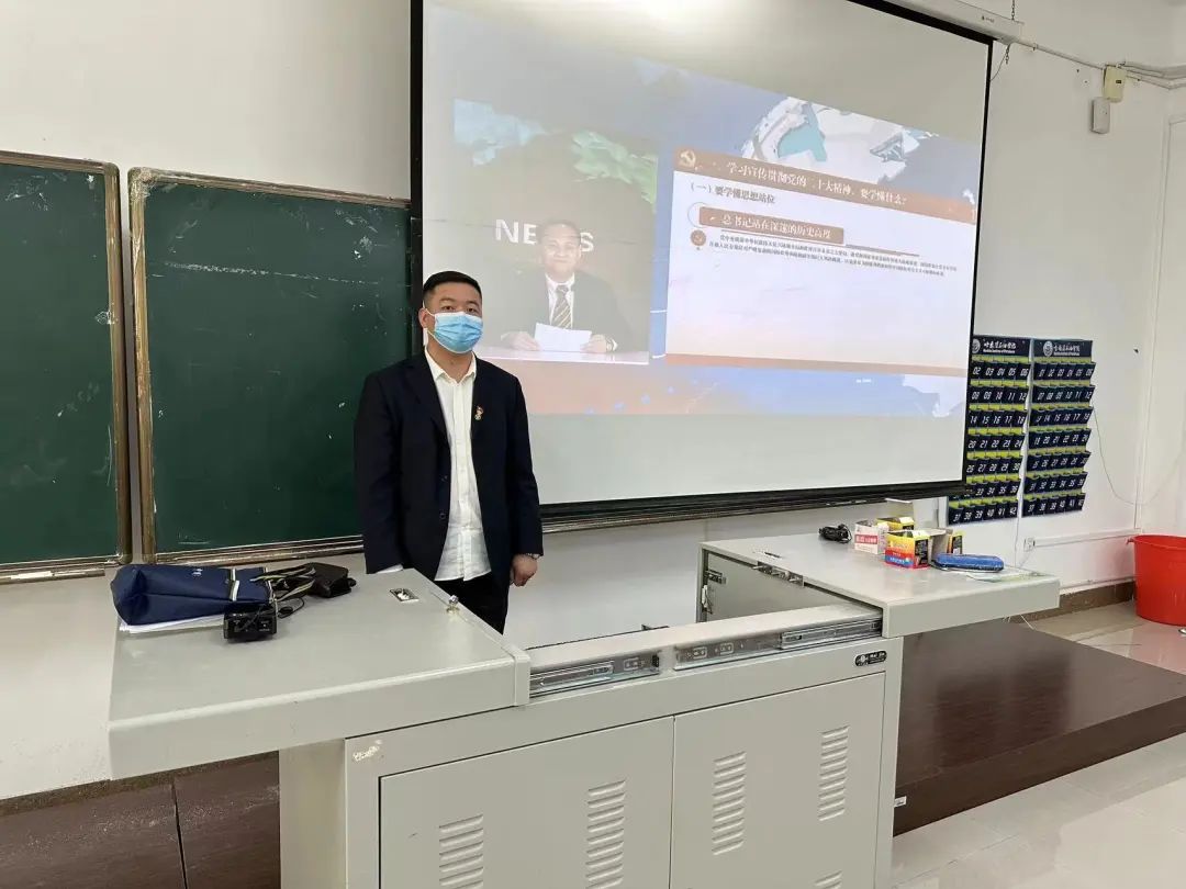 班会上,辅导员老师首先组织学生观看了冰球官网党委书记林立民以《用真心 悟真理 践真行 把党的二十大精神学懂弄通做实》为主题的春季学期“开学第一课”,带领同学们对党的二十大精神进行了深入学习。林书记指出,2023年是全面贯彻落实党的二十大精神的开局之年,广大师生要全面学习、全面把握、全面落实党的二十大精神。深刻领悟“两个确立”的决定性意义,增强“四个意识”、坚定“四个自信”,做到“两个维护”,努力在新征程上开创发展新局面。他勉励广大学生以实现中华民族伟大复兴为己任,砥砺奋发、勇毅前行,明确人生规划,清晰自我人生目标,通过大学生涯的学习和积累,积极进取,成为国家的科技化人才。引导同学们要以坚定的理想信念筑牢精神之基,胸怀“国之大者”、传承奋斗担当。