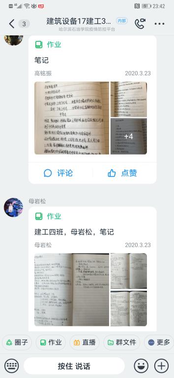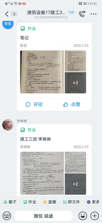 第三是课后作业及答疑。每节课后要求尽快上传笔记以督促学生课堂集中注意力,利用超星学习通的发布作业功能根据重点难点内容留取适当作业,并在下节课前做简要点评,最后通过钉钉学习群开展答疑活动。