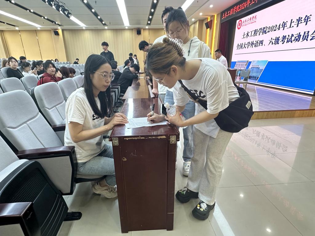 会议结束后,参加全国大学外语四、六级考试的同学们现场签订了诚信考试承诺书,增强了同学们诚信考试的纪律观念,规范了考风考纪。