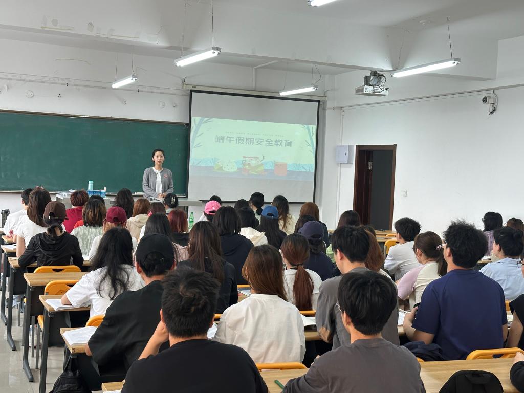 班会上,辅导员老师传达了学院安全工作会议精神,重点强调了节日期间校园用火、用水、用电、消防安全、全体师生的交通出行安全、防溺水安全、留宿学生的常规化管理、食品安全、预防欺凌暴力事件的发生,辅导员老师要将学生安全工作落实落细,责任到人。