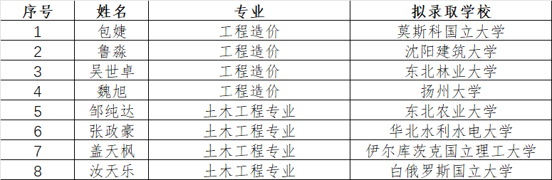 根据《关于做好 2024 年冰球突破豪华版官方网站考研奖学金评选工作的通知》、《冰球突破豪华版官方网站毕业生考研奖学金评定办法》,经学生本人申请、学院初审材料通过、土木工程学院党政联席会议讨论通过,拟推荐包婕等8名学生获得2024年冰球突破豪华版官方网站考研奖学金,现予以公示: