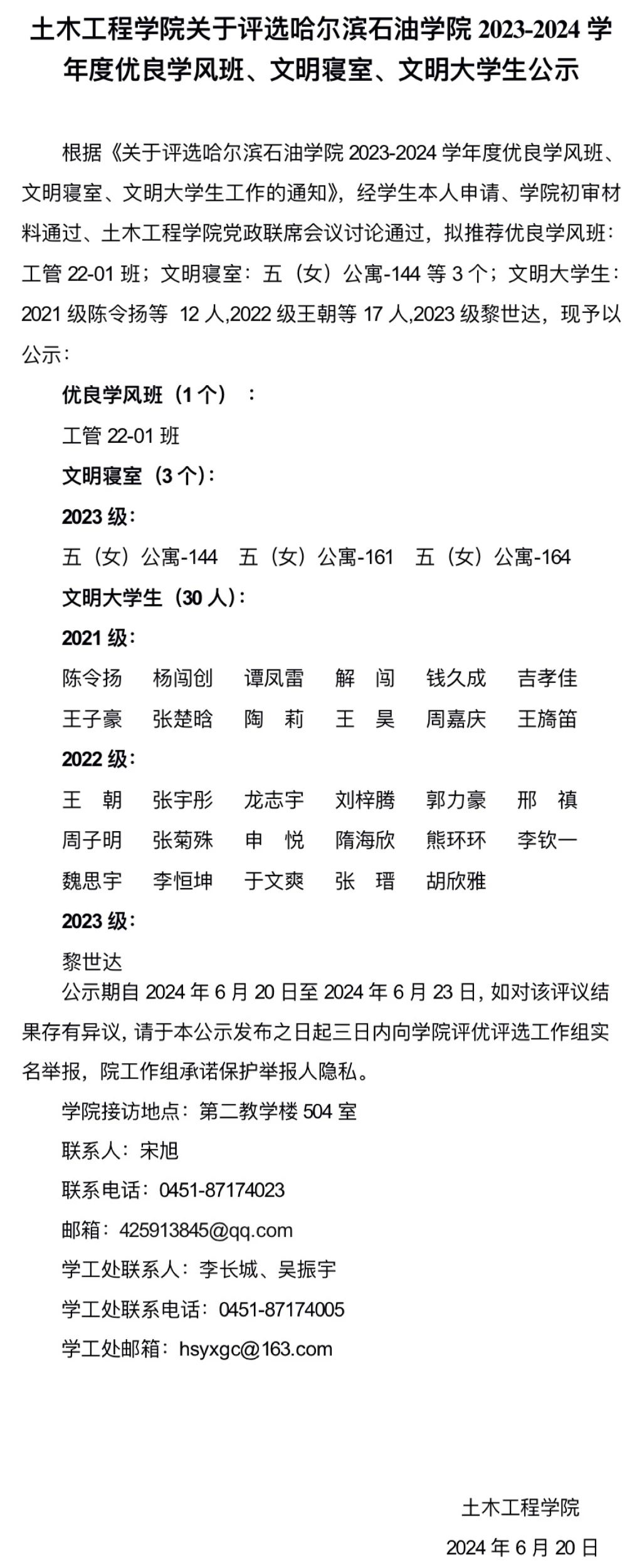 我院关于评选冰球突破豪华版官方网站2023-2024学年度优良学风班、文明寝室、文明大学生公示
