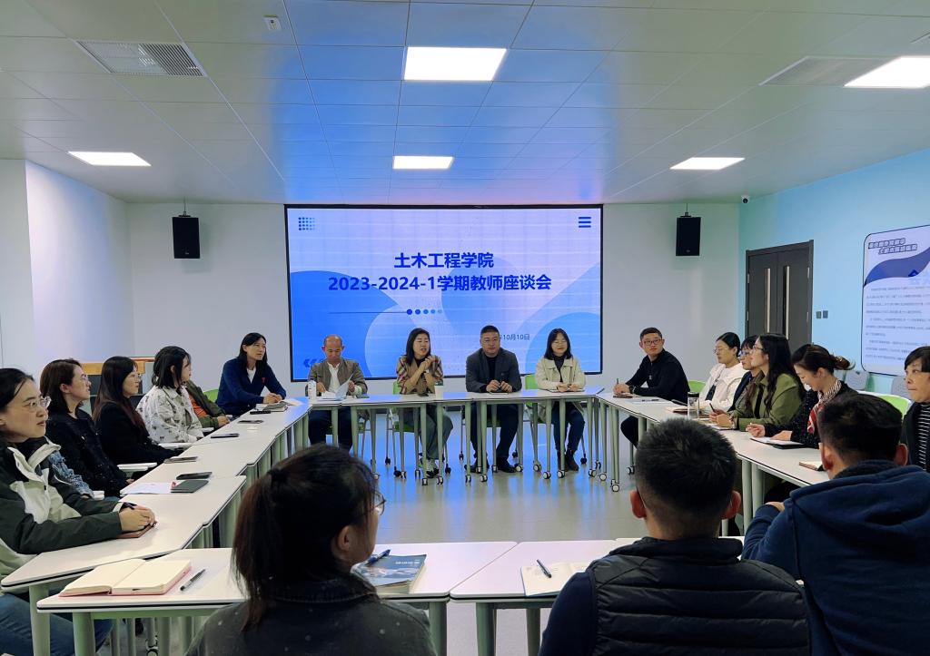为增进教师教学交流,了解教师在教学过程中遇到的问题和困难,更好地服务教师,进一步加强教育教学管理,不断提高教学质量,土木工程学院于2023年10月10日下午在土木工程综合实训馆多功能厅开展了2023-2024学年第一学期期中教师座谈会。此次会议由院长盖晓连主持,党总支书记宋旭、副院长张佰真铭、院长助理荆明野及土木全体教工参会。