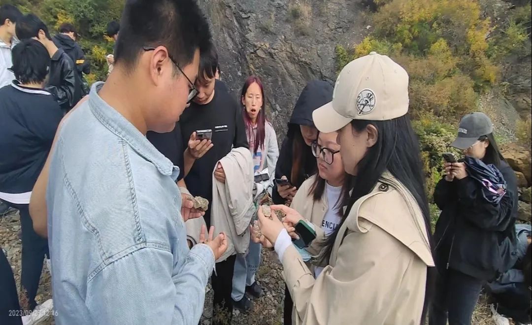 实习第二天,组织学生前往玉泉镇采石场,要求学生掌握岩石的野外认识,掌握野外建筑材料的调查方法。学习期间学生们积极观察、记录、拍照等收集实地资料。