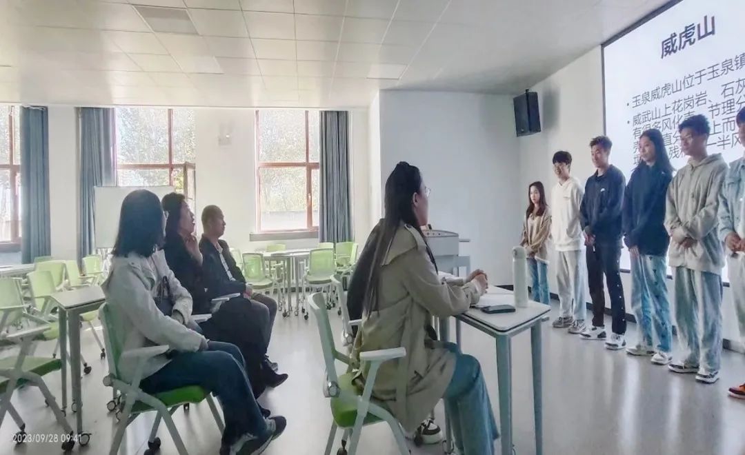 实习第四天,进行内业整理,按班级分组制作ppt进行实习答辩,答辩过程中盖晓连院长、张佰真铭副院长、荆明野院长助理莅临指导。最后学生通过野外实习的内容,汇总整理并写出实习报告。