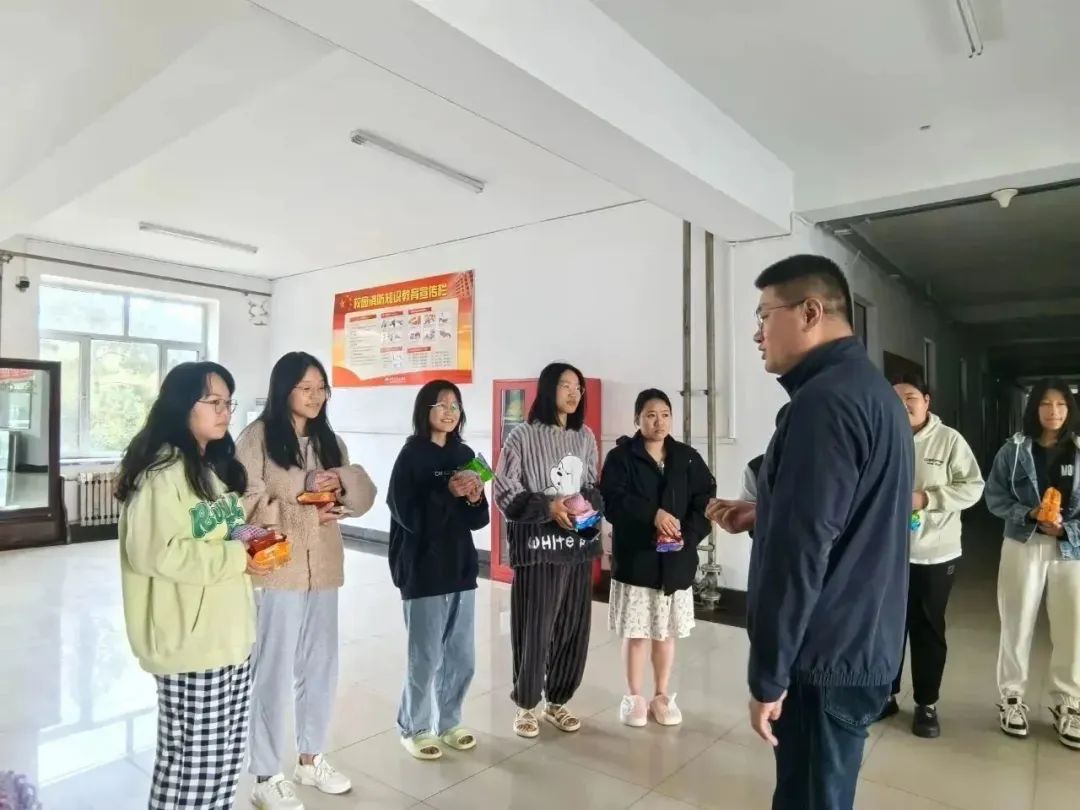会后,宋旭书记和管艺濛老师来到的学生宿舍,看望了节日假期留校的同学们,并为同学们送去了节日的祝福和慰问品。向学生强调了假期出行安全、寝室安全用电、谨防电信诈骗等注意事项,希望大家能度过一个平安、健康、幸福的中秋节。大家纷纷表示,领导和老师们的关心让他们感受到了家的温暖,一定牢记学校和老师们的嘱托,在今后的学习生活中严格要求自己,努力实现人生理想。
