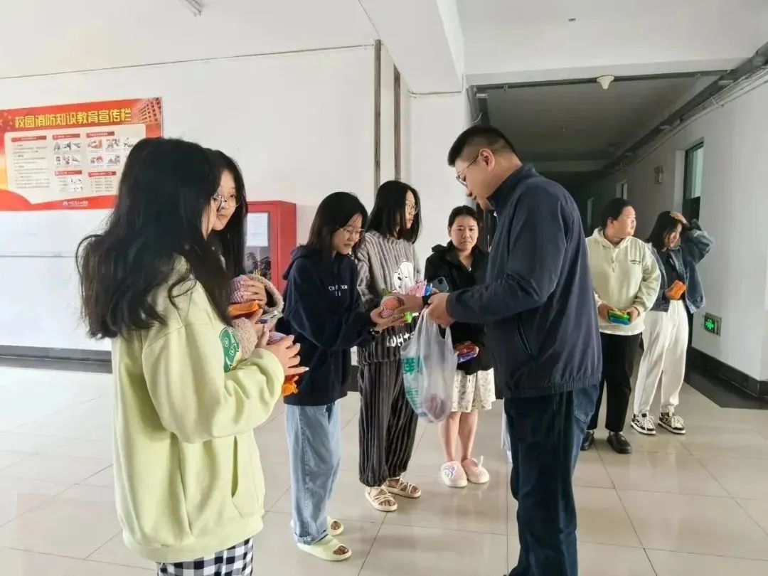 丹桂飘香,浓情万里。为使假期留校不能与家人团聚的新同学感受到来自学院的温暖和关心,2023年9月29日上午,在中秋佳节来临之际,土木工程学院党总支书记宋旭、2023级辅导员管艺濛,与留校学生代表开展座谈会,并走进学生公寓慰问在校学生,为同学们送上暖心礼物和节日祝福,让学生倍感温暖。