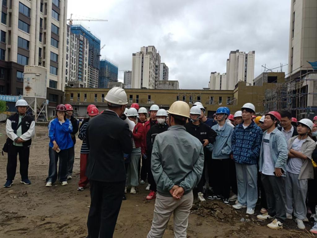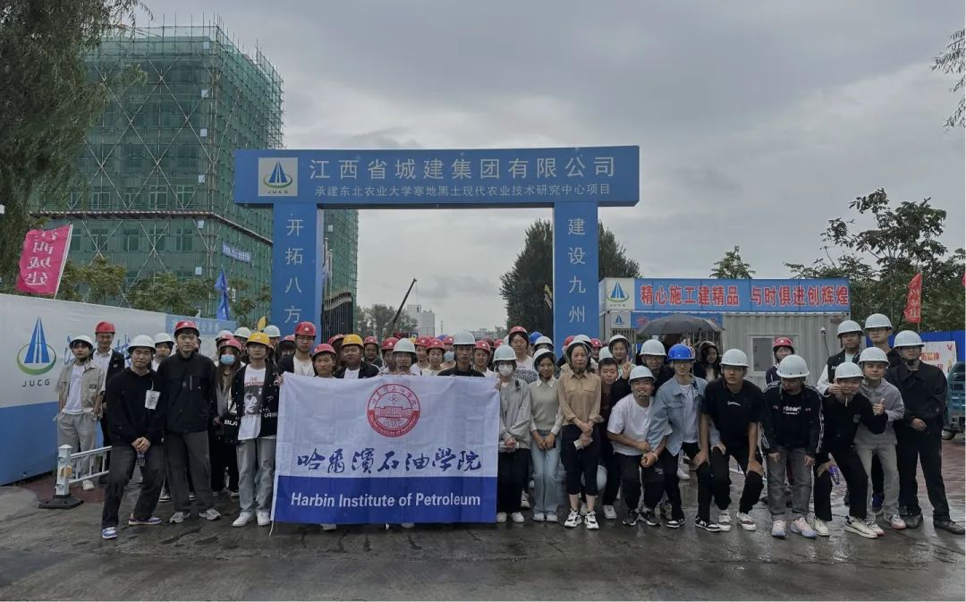 第二天到东北农业大学寒地黑土现代农业技术研究中心项目参观实习,学生深入施工现场,在技术人员的讲解下,大家对现场的施工节点、施工工艺流程有了初步的了解,并实际感受了施工的作业环境,了解了安全施工、文明施工等知识。