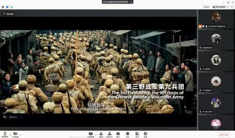 电影《长津湖》是以抗美援朝第二次战役中的长津湖战役为背景,讲述了一个志愿军连队在极度严酷环境下坚守阵地奋勇杀敌,为长津湖战役胜利作出重要贡献的感人故事。观影过程中,在场团员青年被带回到长津湖战役的悲壮历史画面中,完全被跌宕起伏的故事情节和中国人民志愿军义无反顾赴朝作战的意志所震撼,中国人民志愿军面对极端严酷的冰冷环境下,身处异国他乡,却凭着钢铁般的意志和英勇无畏的战斗精神为国家命运赴汤蹈火,创造了全歼美军一个整团的纪录,迫使美军王牌部队经历了有史以来“路程最长的退却”。这次战役彻底粉碎了美军在圣诞节前占领整个朝鲜的美梦,扭转了战场态势,为最终到来的停战谈判奠定了胜利基础。