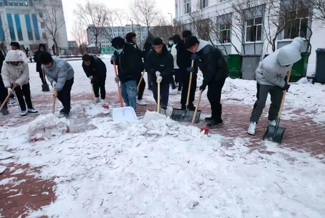 美丽的十一月,哈尔滨终于迎来了这个冬天的第二场雪,漫天飞雪阻碍了校园师生的出行,11月25日中午,我院大一新生迅速组织起来投入对校园分担区积雪的清扫工作中去。