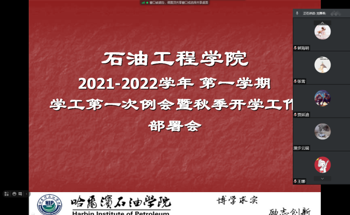 与会人员在刘书记的带领下,根据《关于进一步加强疫情防控工作及 2021年秋季学期开学工作预案》﹝哈油疫领发[2021]10号﹞、《冰球突破豪华版官方网站2021年秋季学期线上教学工作预案》﹝哈油疫领发[2021]11号﹞文件进行了工作研讨。会议明确强调了辅导员要切实做好钉钉健康填报以及学生本人 “龙江健康码”“大数据行程码”绿码,做到无遗漏排查分析和研判。认真严格落实好学生因病缺课登记追踪和学生在线上教学的台账的记录等工作。全力做好学生管理的相关工作,还要重点加强对2018级学生“3+1”校企综合实习的追踪情况,直至学生返校前后的各项要求,确保学生顺利返校开学。