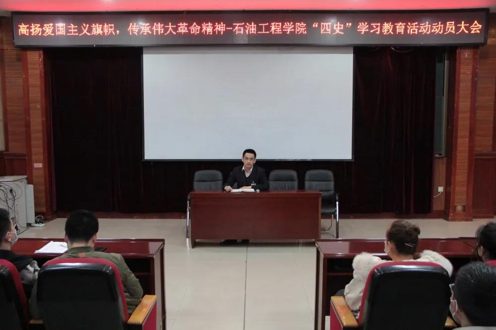 为深入贯彻习近平总书记关于学校党建和思政工作的重要指示批示精神,推动我院学生深入学好“四史”,高扬爱国主义旗帜,传承伟大革命精神。石油工程学院于3月19日在主教学楼518教室召开“四史”学习教育活动动员大会。学生党员,入党积极分子及学生代表参加本次会议,会议由我院党总支书记刘雁春主持。