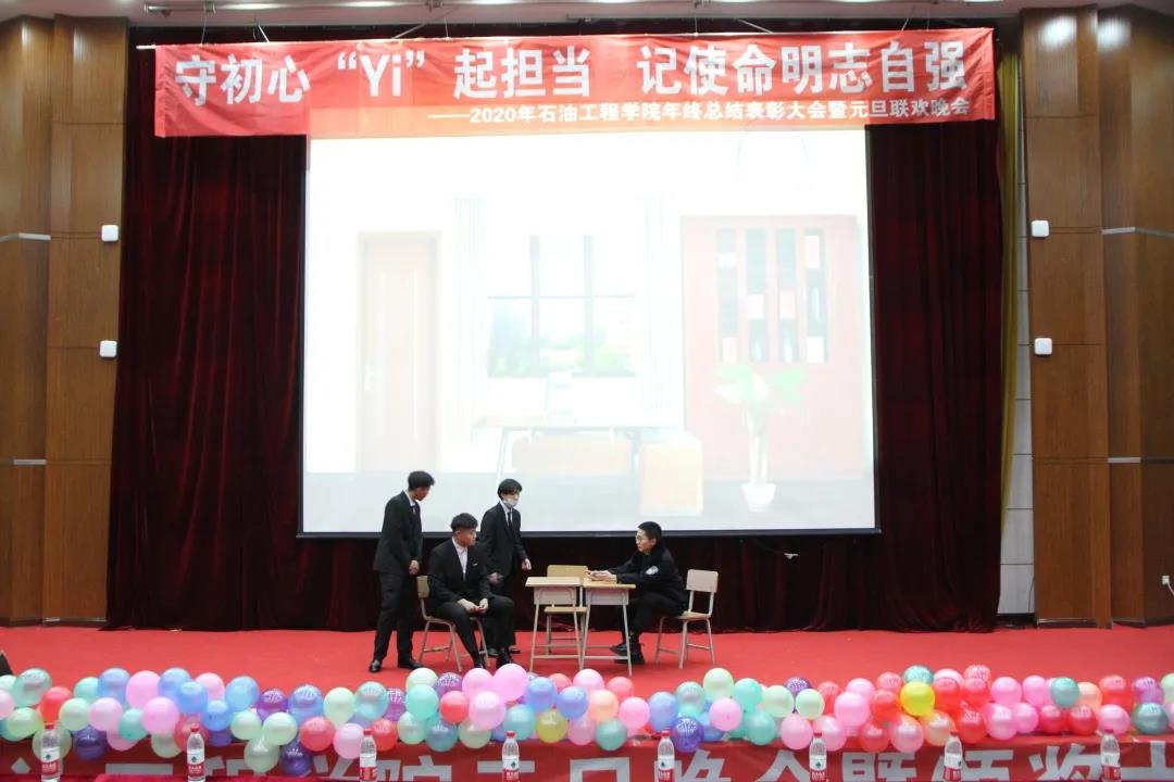 为迎接新的一年的到来,回忆总结2020年的精彩瞬间与成果。石油工程学院于12月15日下午5点30分于图书馆报告厅举办了以“守初心“Yi”起担当,记使命明志自强”为主题的年终晚会暨颁奖典礼。校团委书记王锦石、校团委副书记彭雷、党总支书记刘雁春、党总支副书记&2020级辅导员张雪、学团办公室主任&17级辅导员王昱,学生党支部书记&18级辅导员贾延迪以及19级辅导员郭海明出席本次活动。