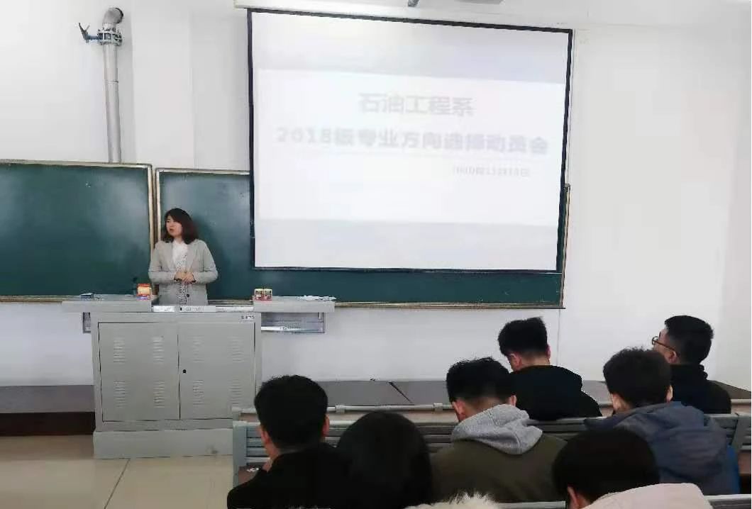 为进一步完善专业化人才,创新应用型人才培养模式,按照石油工程专业培养方案要求,石油工程系于11月24日上午10:00在主教519召开了“2018级石油工程专业方向选择动员会”。石油工程系系主任张国芳、油气井工程教研室主任杨昭、油气田开发教研室主任王国库及2018级1-3班全体学生出席了本次会议。