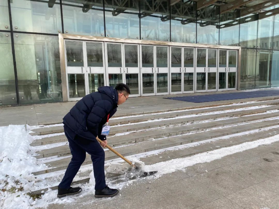 为确保师生的出行安全,11月9日上午9时,党总支书记刘雁春和辅导员贾延迪老师带领部分学生党员及入党积极分子开展义务清冰雪志愿服务,对主教后门前的冰雪进行清扫。