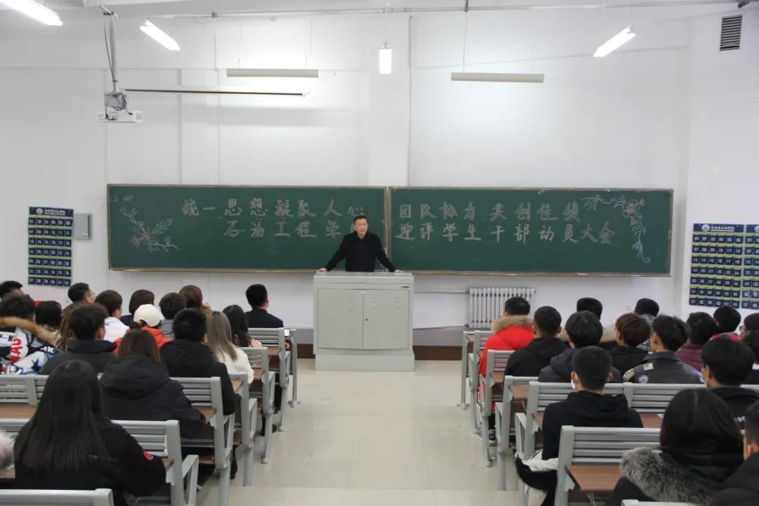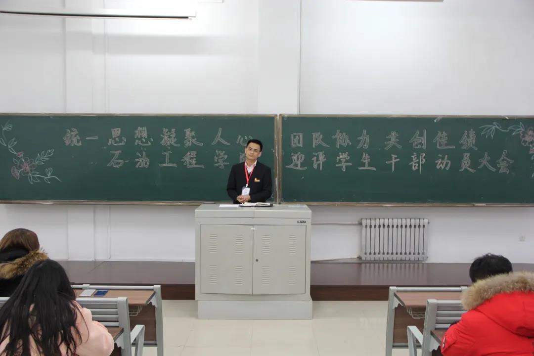 会议最后,院长龙安厚教授做出重要讲话:全体学生干部要做到“以教风带学风,以管理督学风,以考风正学风,以活动促学风,以榜样树学风,以氛围筑学风。”希望全体学生干部继续发扬石油学子的优良传统,确保高质量、无纰漏地完成各项任务,以最佳的状态迎接评估,为学校顺利通过评估做出新的更大的贡献。