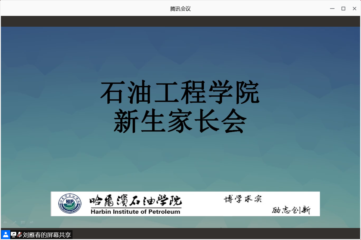 为了更好地开展迎新工作,解答2020级新生和家长期待的相关问题。9月21日晚19:00,石油工程学院2020级新生家长会借助腾讯会议平台以线上形式顺利召开。出席本次会议的有石油工程学院院长龙安厚、党总支书记刘雁春、副院长李岳祥、党总支副书记&新生辅导员张雪、院长助理朱砂、石油工程专业系主任张国芳、全体2020级新生及家长。