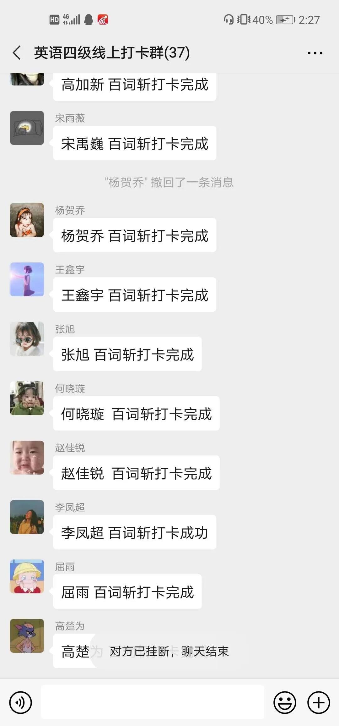 突如其来的疫情,改变了同学们的学习方式。石油工程学院不忘教育初心,牢记育人使命,为进一步加强学风建设,增强同学们的自律意识和自学能力,帮助同学们尽早树立信心,确立目标,积极备考英语四级,提高四级的通过率,将原有“四级班”的学习范围扩大至2019级全体同学,开展“英语四级每日练”线上打卡活动。
