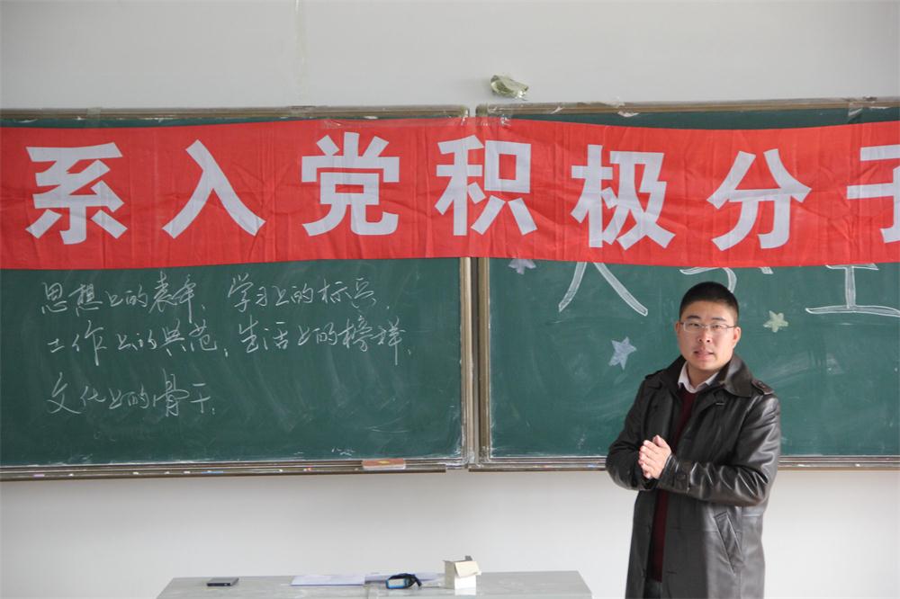 此次党课培训,毛雷书记从“思想上的表率”、“学习上的标兵”、“工作上的典范”、“生活上的榜样”和“文化上的骨干”这五个方面对同学们进行了详细的讲解。使同学们深刻意识到大学生党员是学生群体中的先进分子,是同学中的榜样,而且是党的队伍中最具创新思维能力、最富有活力的有生力量。