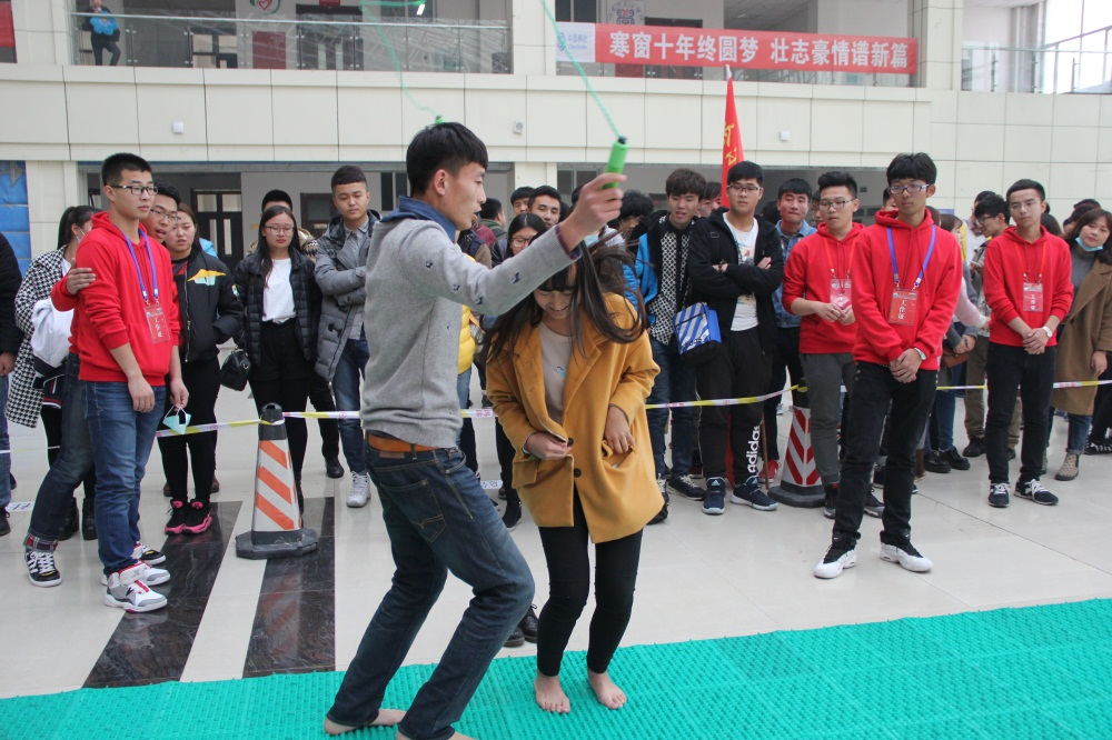 本次干部素质拓展大赛为模拟奔跑吧兄弟的室内竞赛,比赛形式多种多样,让人耳目一新。比赛开始后,我系的参赛同学在哨响的一瞬间好似离弦之箭,飞快的冲出去,虽然脚底板踩在指压板上传来的阵阵酸痛,诡异的表情引来评委老师和同学们的阵阵发笑。但我系同学还都是卯足了劲冲向终点,坚持完成了自己的任务。最终,经过我系同学的不懈努力在本次活动中取得了第三名的优秀成绩。