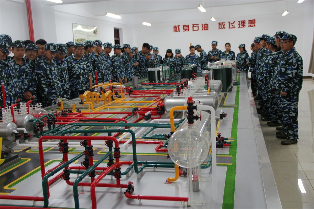 最后,我们来到了石油工程系油气集输系统实验室和钻井工艺流程实验室,实验室的尹博宁、刘鑫二位老师先后为新生讲述了五站一体仿真模拟模型,钻井工艺流程模型,并将其生动展示给同学们。