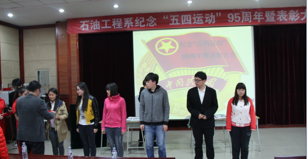 为纪念“五四运动”95周年,激励全系团员青年为实现中华民族伟大复兴的“中国梦”而努力奋斗,5月4日中午,“石油工程系纪念五四运动95周年暨表彰大会”在主教518举行。各年级团员代表参加了此次大会。